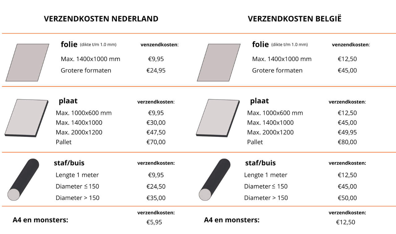 Voor de grotere platen en buizen of gezaagde/geknipte platen is over het algemeen de levertijd 3 tot 5 werkdagen.